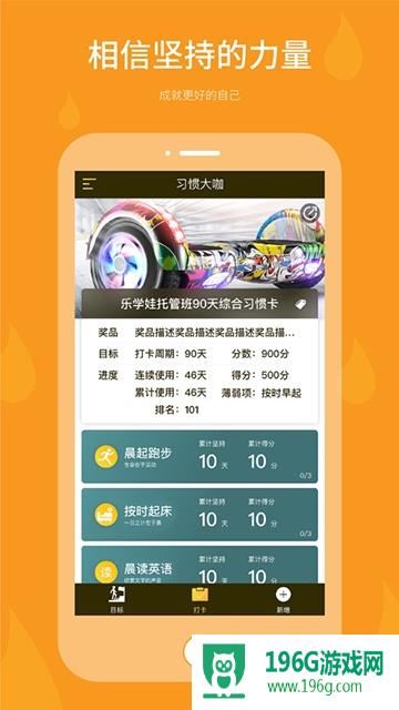 习惯大咖APP是一款帮助用户养成习惯的应用软件。用户可以在手机应用界面中新增习惯卡(包)并设定奖励规则和奖品内容。系统支持拍照图示化奖品内容。用户可以每天看着奖品图片完成习惯打卡。我们希望让每个用户都相信“坚持的力量”!相信坚持的力量,成就优异的自我,还有满足你愿望的机会哟!